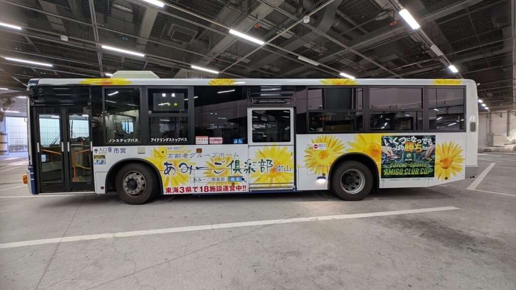 そのため、12/6よりあみーご倶楽部南山のラッピングバスが